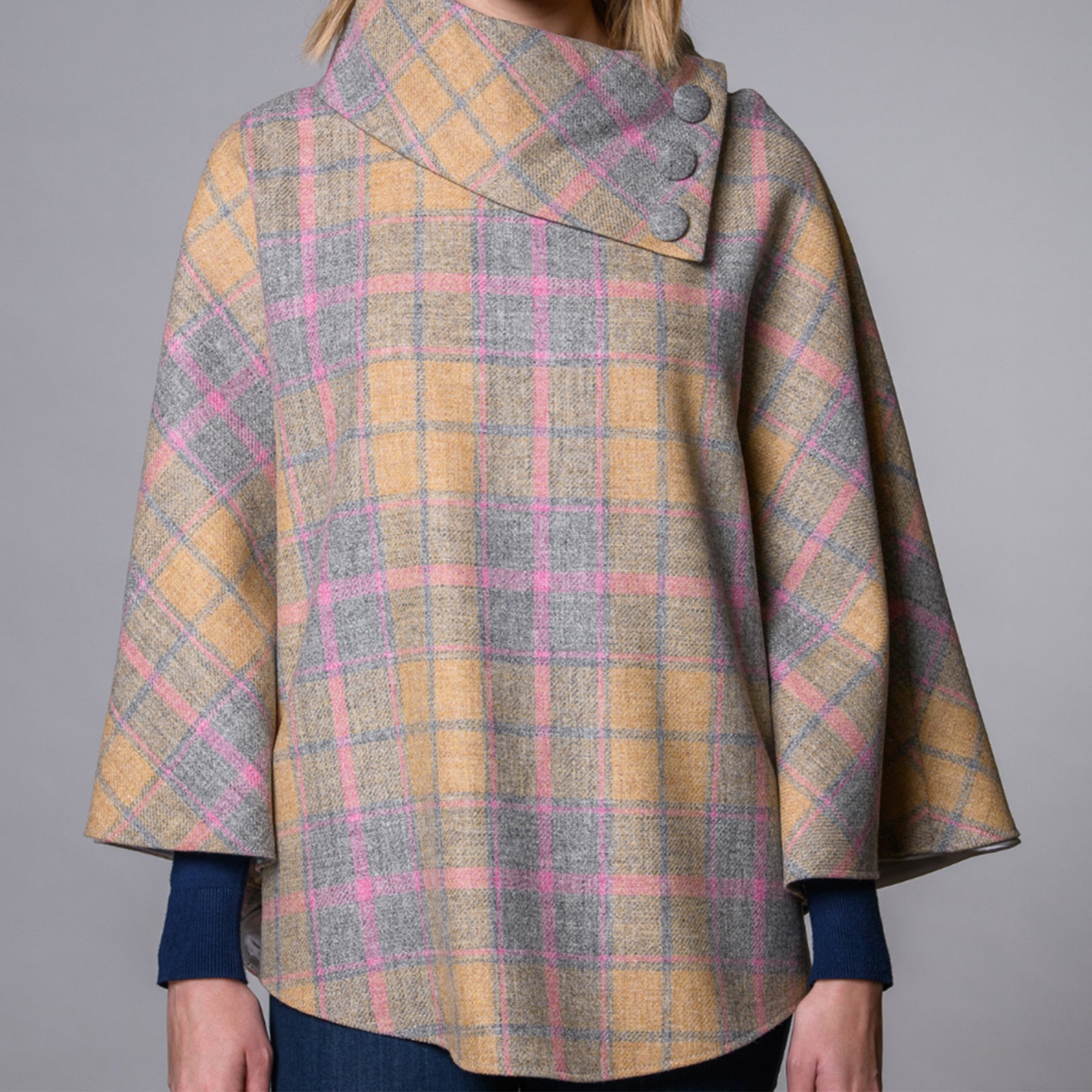 €130.00Wool Poncho - Pink / Peach / Grey Check