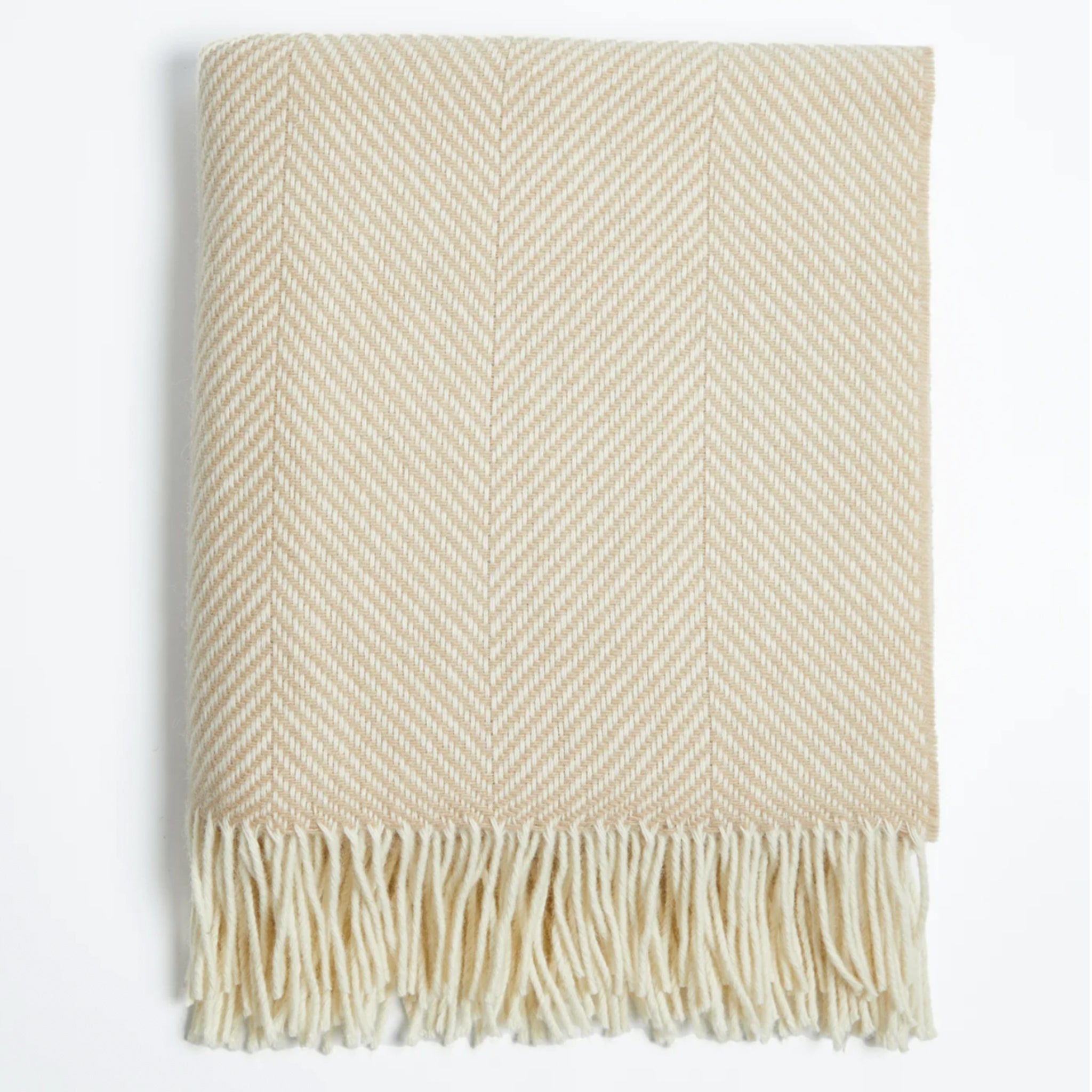 A wonderfully soft Merino herringbone throw for keeping the winter chill at bay. 100% Merino wool. Dry Clean Only.