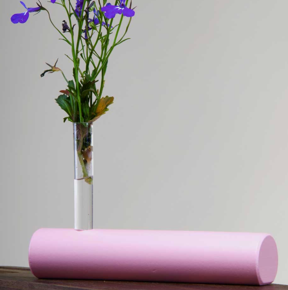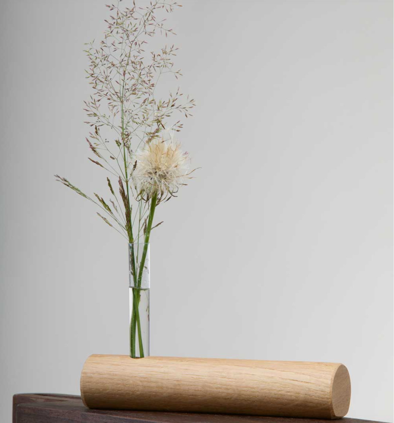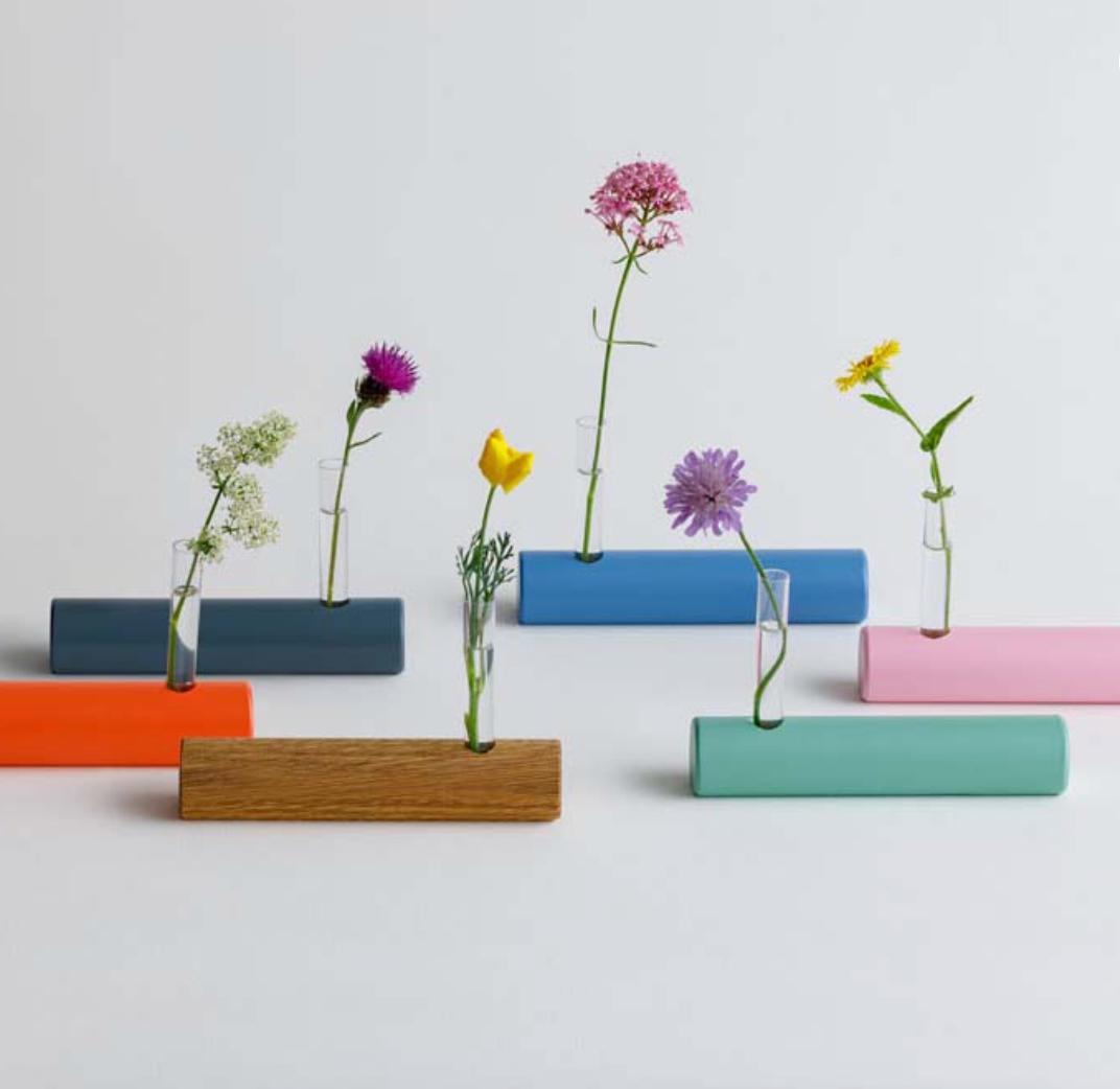 Made from solid hardwoods complete with a clear glass vase, the SPUN flower vase is available in six colours - natural oak, Blue, Green, Grey, Pink and Orange to suit all tastes and interiors.
